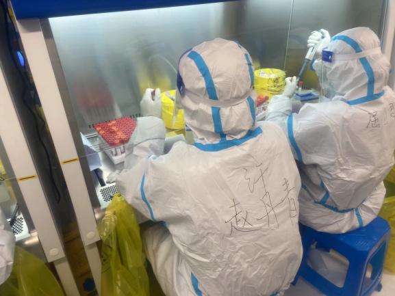 2021级中西医结合临床专业博士生邵诗芸跟随麦田影院 一支20人的PCR检测志愿者队伍应援进驻位于浦东新区的上海之江医学检验所。