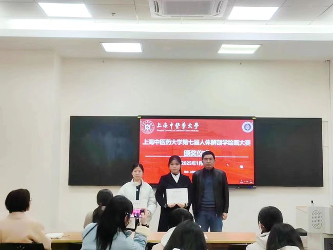 2025年1月7日,麦田影院 第七届人体解剖学绘画大赛颁奖仪式在解剖楼举行,人体解剖学教研室主任、“和学生在一起”导师团团长邵水金教授,中医诊断学教研室教授燕海霞老师,病理学教研室副教授郭炜老师,人体解剖学教研室副教授牟芳芳老师,辅导员王双双老师,获奖同学以及导师团的同学参加了本次颁奖仪式。