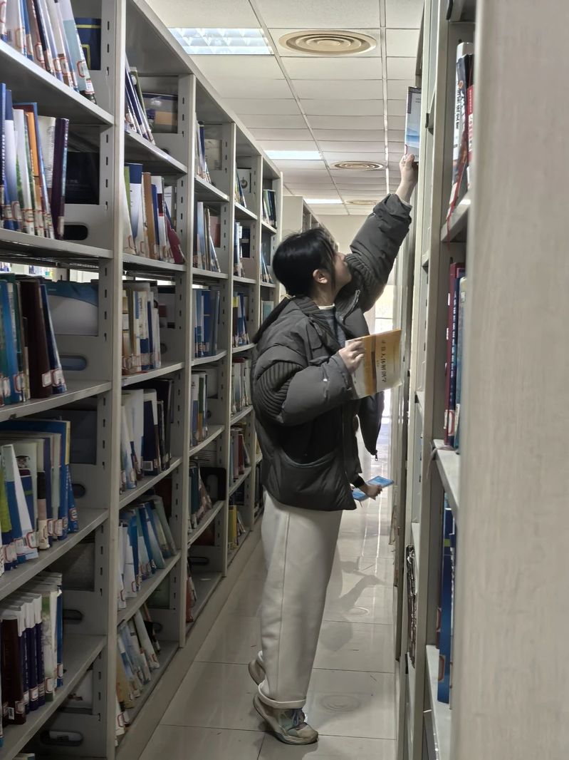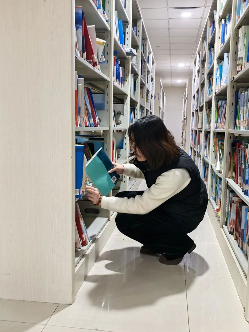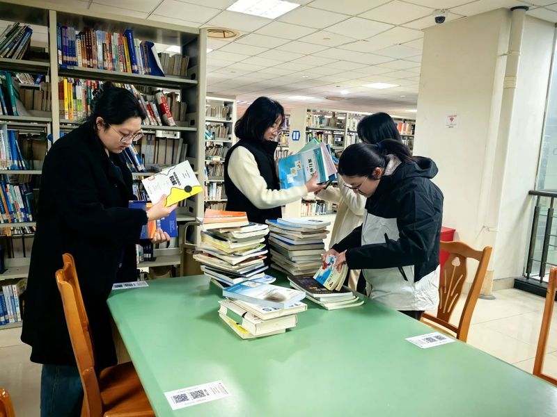 活动伊始,图书馆读者服务中心的陆老师为志愿者们进行了简短的培训,介绍了图书馆的布局、书籍分类以及志愿服务的注意事项。随后,志愿者们迅速投入到紧张而有序的工作中。他们穿梭在书架之间,认真整理书籍,将有待整理的图书归位。在整理书籍的过程中,志愿者们需仔细核对标签,在众多书架中寻找对应的书架,面对一些翻动较多的书籍,也会倍加小心翼翼,确保每一本书都能准确地回到属于它的“家”,为读者营造一个干净、整洁、舒适的阅读环境。