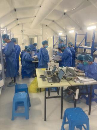 2021级中西医结合临床专业博士生邵诗芸跟随麦田影院 一支20人的PCR检测志愿者队伍应援进驻位于浦东新区的上海之江医学检验所。