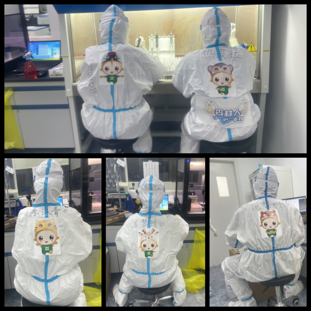 检验所实行机器24小时不停,工作人员轮三班制,每天经手3万左右的样本量。邵同学所在的小分队第一天就被分配到晚班,从晚上9点工作至第二天凌晨5点,主要负责取样、抽提RNA、扫码记录样本等工序。闷热的负压环境实验室里,医用帽子、N95口罩、两层手套、医用防护服、防护面罩、一次性鞋套的全副武装下,护目面罩上聚集起密密麻麻的水珠。一整晚下来,大家手疼且腰酸背痛,脸上也留下口罩的勒痕。此后重复工作的每一天,让队员们真切感受到这个工作的意义。经手的样本也见证着同学从核酸检测“小白”到“大白”的成长过程。在大众看不见的核酸检测“战场”上,从收到检测样本到检测报告的输出,每一个步骤都倾注着检验人员的辛勤和汗水。