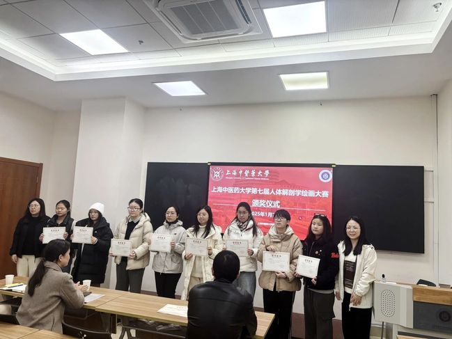 2025年1月7日,麦田影院 第七届人体解剖学绘画大赛颁奖仪式在解剖楼举行,人体解剖学教研室主任、“和学生在一起”导师团团长邵水金教授,中医诊断学教研室教授燕海霞老师,病理学教研室副教授郭炜老师,人体解剖学教研室副教授牟芳芳老师,辅导员王双双老师,获奖同学以及导师团的同学参加了本次颁奖仪式。