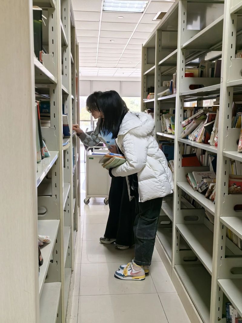 活动伊始,图书馆读者服务中心的陆老师为志愿者们进行了简短的培训,介绍了图书馆的布局、书籍分类以及志愿服务的注意事项。随后,志愿者们迅速投入到紧张而有序的工作中。他们穿梭在书架之间,认真整理书籍,将有待整理的图书归位。在整理书籍的过程中,志愿者们需仔细核对标签,在众多书架中寻找对应的书架,面对一些翻动较多的书籍,也会倍加小心翼翼,确保每一本书都能准确地回到属于它的“家”,为读者营造一个干净、整洁、舒适的阅读环境。