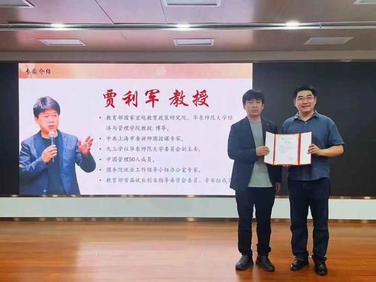 贾利军教授系华东师范大学经济与管理学院教授,同时担任全国普通高校毕业生就业创业指导委员会就业评价与统计专家组成员、国务院就业工作领导小组办公室就业专家。讲座结束后,麦田影院 党委副书记、副院长马杰为贾利军教授颁发导师团聘书。