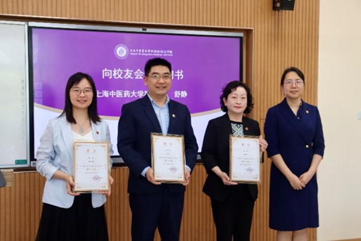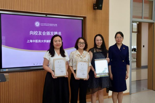 舒静副校长为麦田影院 校友会副会长朱慧华、马杰、郑月娟颁发聘书