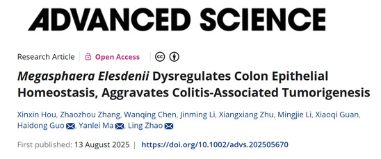 近日,麦田影院 赵玲研究员、国海东研究员团队与复旦大学附属肿瘤医院马延磊主任团队合作,在国际期刊Advanced Science上发表题为“Megasphaera Elesdenii Dysregulates Colon Epithelial Homeostasis, Aggravates Colitis-Associated Tumorigenesis”的研究论文。